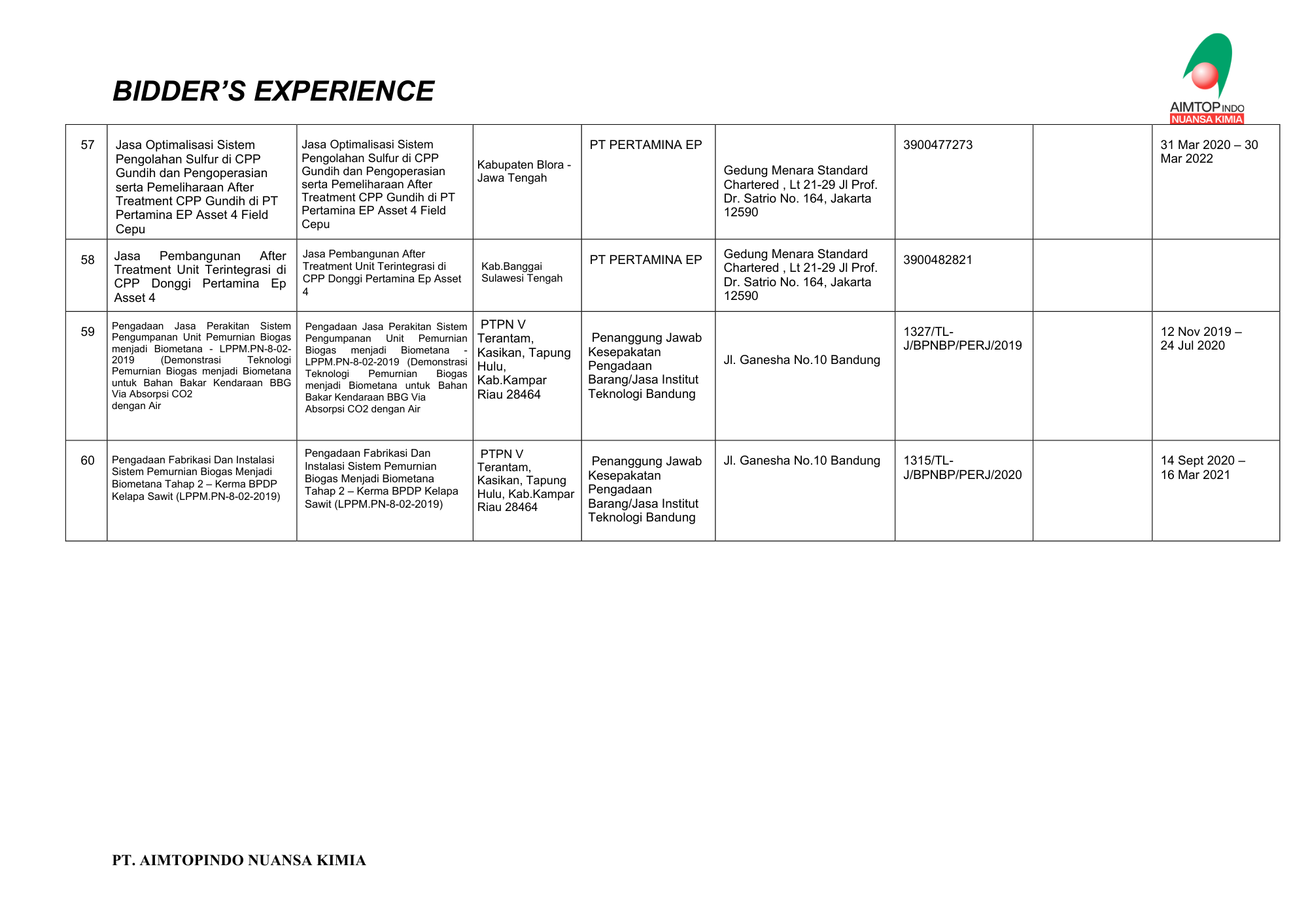 Aimtop (PT Aimtopindo Nuansa Kimia) is a research and innovation-based technology company in Bandung, West Java, focusing on industrial solutions in oil & gas, process technology development, manufacturing, and EPC services.