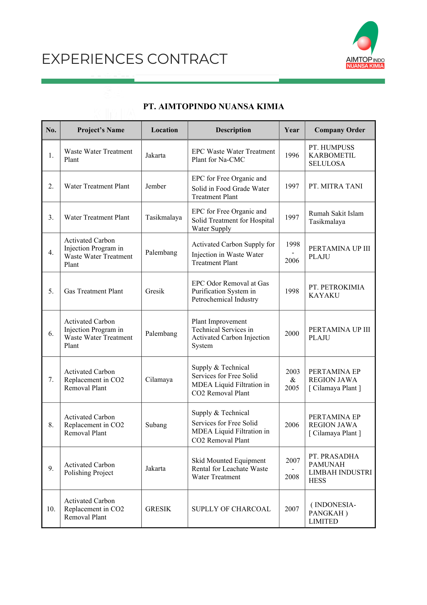 PT Aimtopindo Nuansa Kimia was established in 1995 in Bandung.